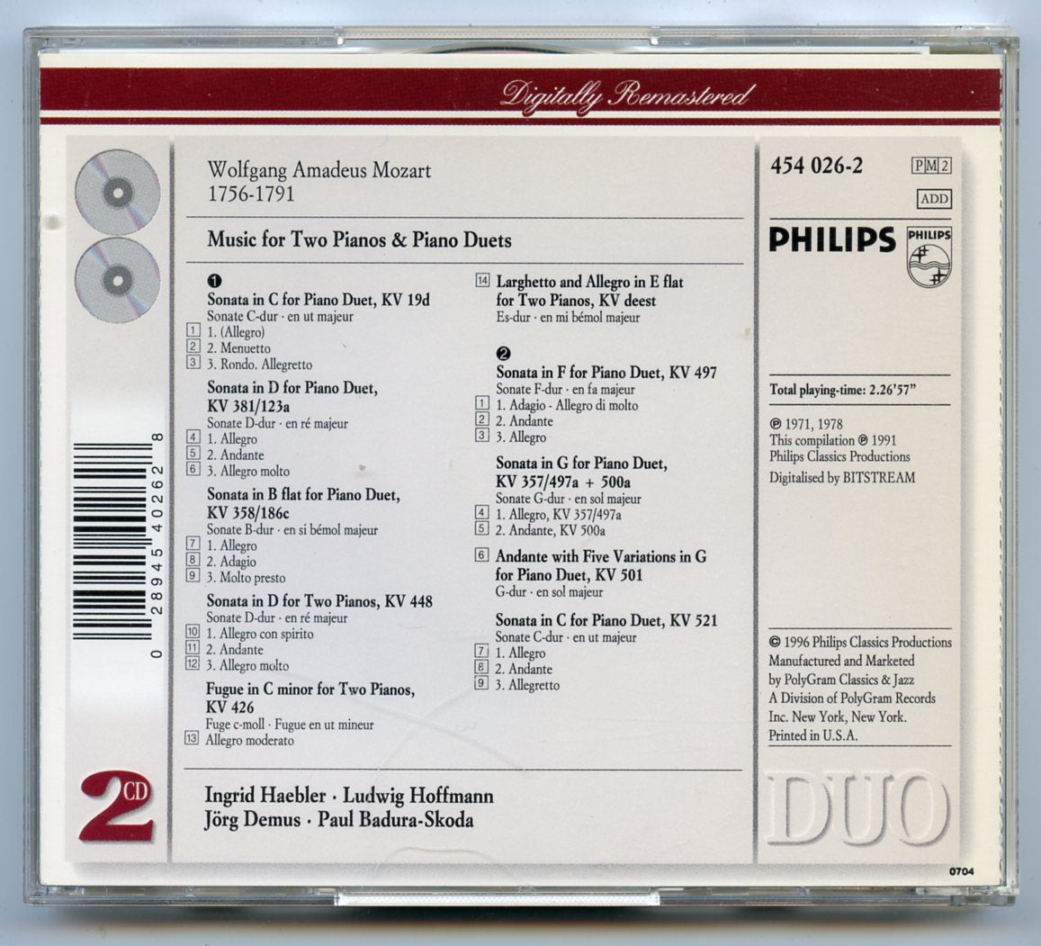 Mozart Music for 2 Pianos, Piano Duets, by Ingrid Haebler, Ludwig Hoffmann, Jorg Demus, and Paul Badura Skoda [CD]