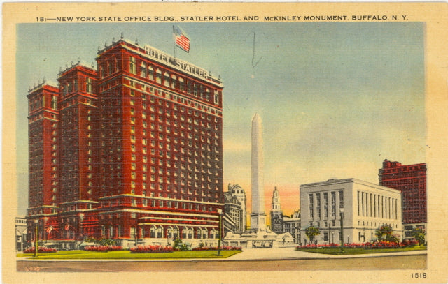 POSTCARD TITLE: New York State Office Building, Statler Hotel and McKinley Monument, Buffalo, N. Y.