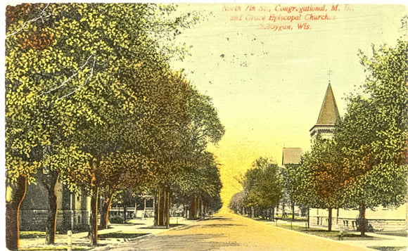 POSTCARD TITLE: North 7th St., Congregational M. E., and Grace Episcopal Church, Sheboygan, Wis.