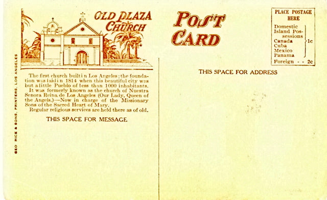 POSTCARD TITLE: Old Mission Plaza Church, Los Angeles