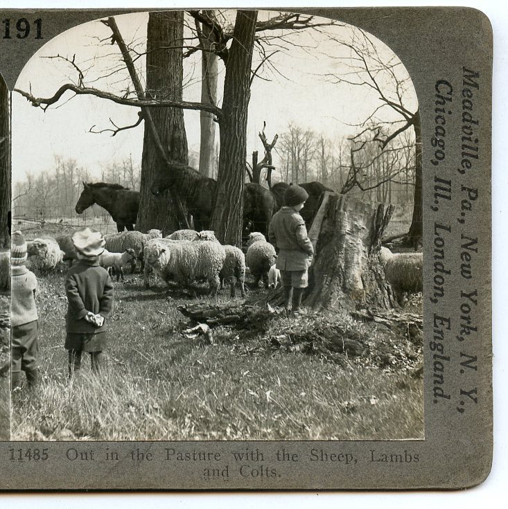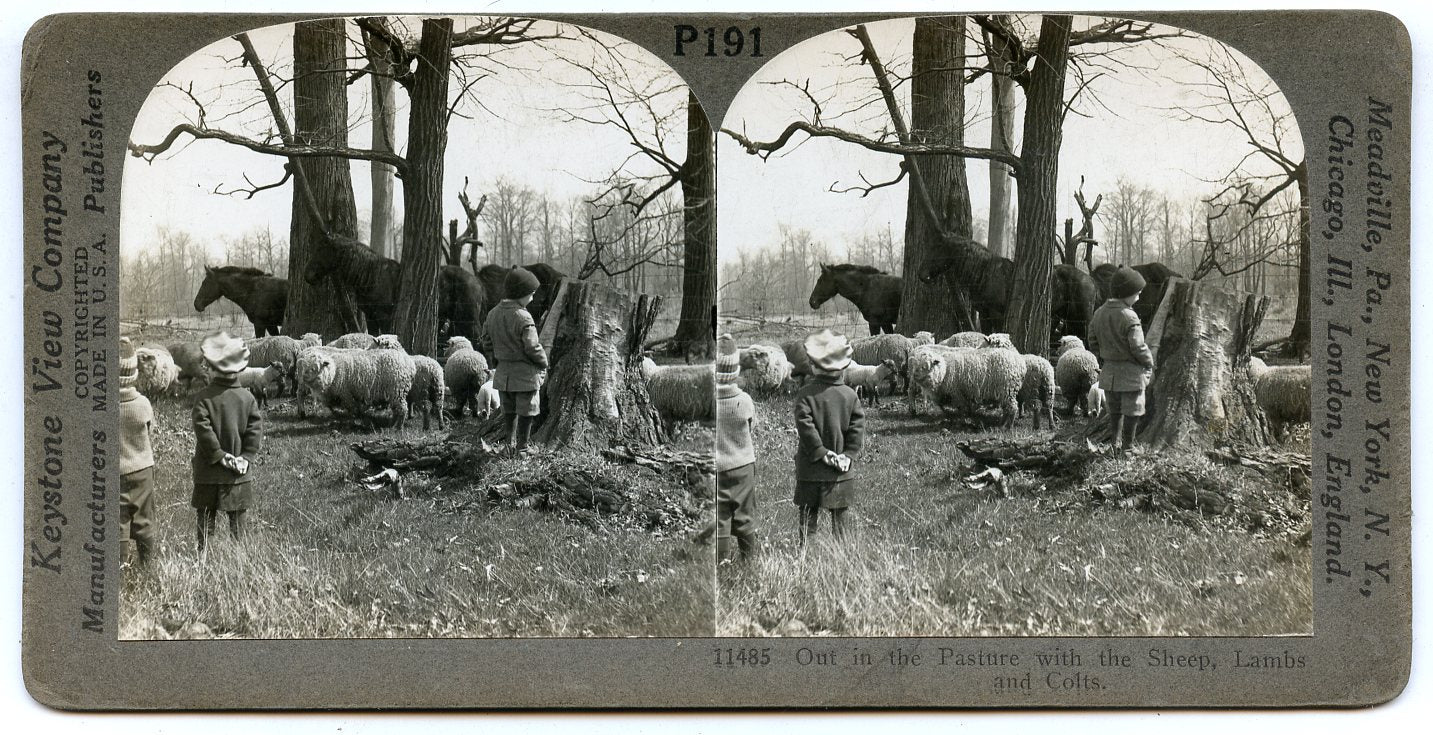 STEREOVIEW TITLE: Out in the Pasture with the Sheep, Lambs, and Colts