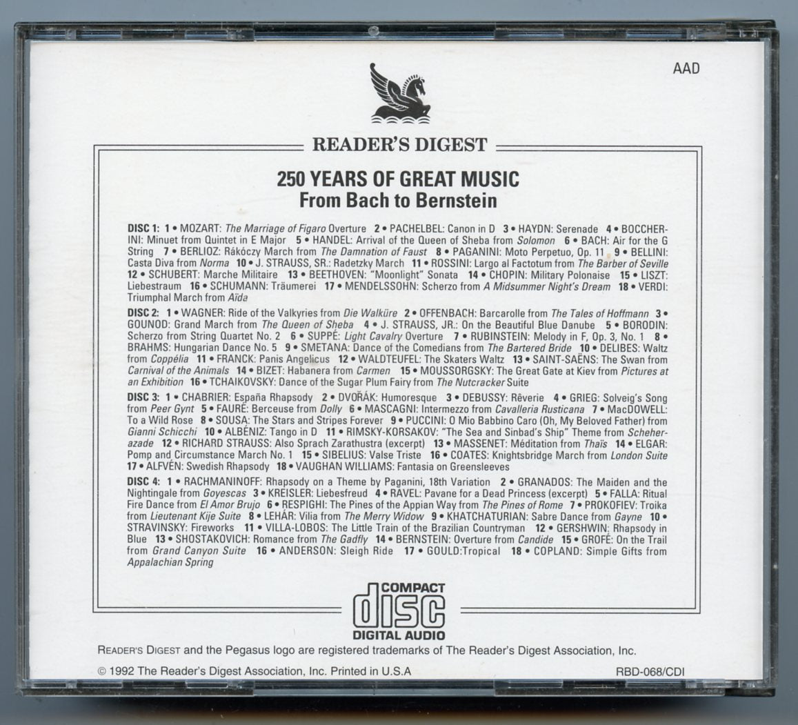 Readers Digest 250 Years of Great Music From Bach to Bernstein, by Reader's Digest [CD]