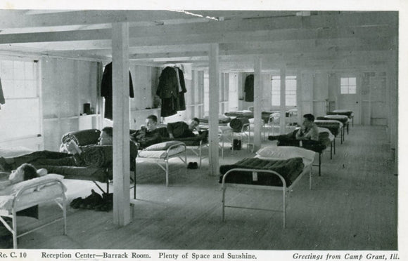 Reception Center, Barracks Room, Plenty of Space and Sunshine, Greetings from Camp Grant, IL [Postcard]