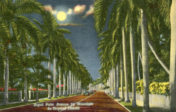Royal Palm Avenue by Moonlight in Tropical Florida [Postcard]