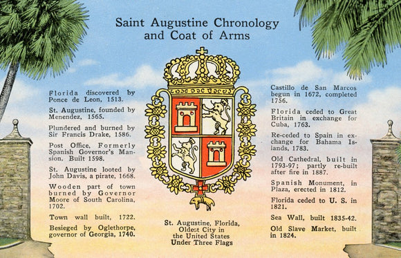 POSTCARD TITLE:   Saint Augustine Chronology and Coat of Arms