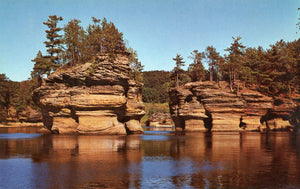 POSTCARD TITLE: Sugar Bowl, A Rock Island Resembling an Old Fashioned Sugar Bowl, Seen on the Lower Dells Boat Trip