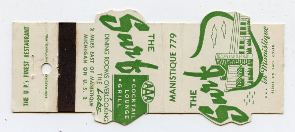 Surf Restaurant, Manistique, MI [Matchbook Cover]