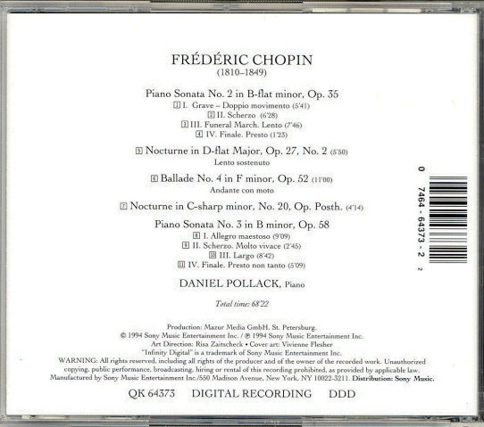 Piano Sonata No. 2 in B-flat minor,Nocturne in D-flat Major, Ballade No. 4 in F minor, Nocturne in C-sharp minor, Piano Sonata No. 3 in B minor