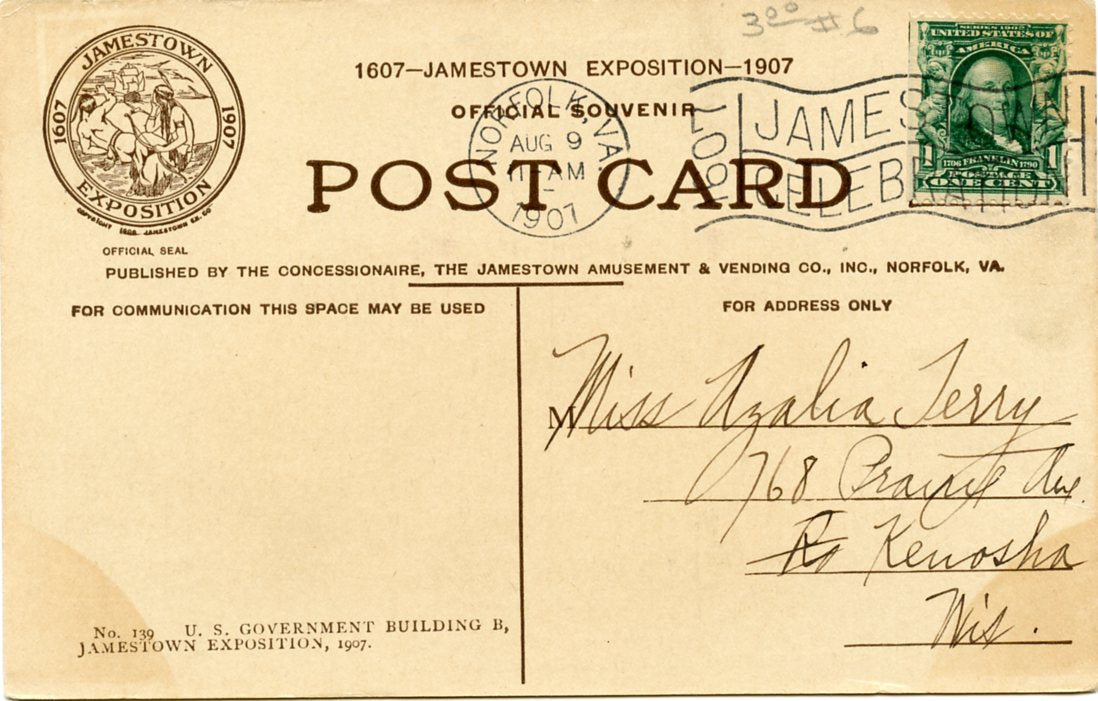 POSTCARD TITLE: U. S. Government Building B, Jamestown Exposition, 1907