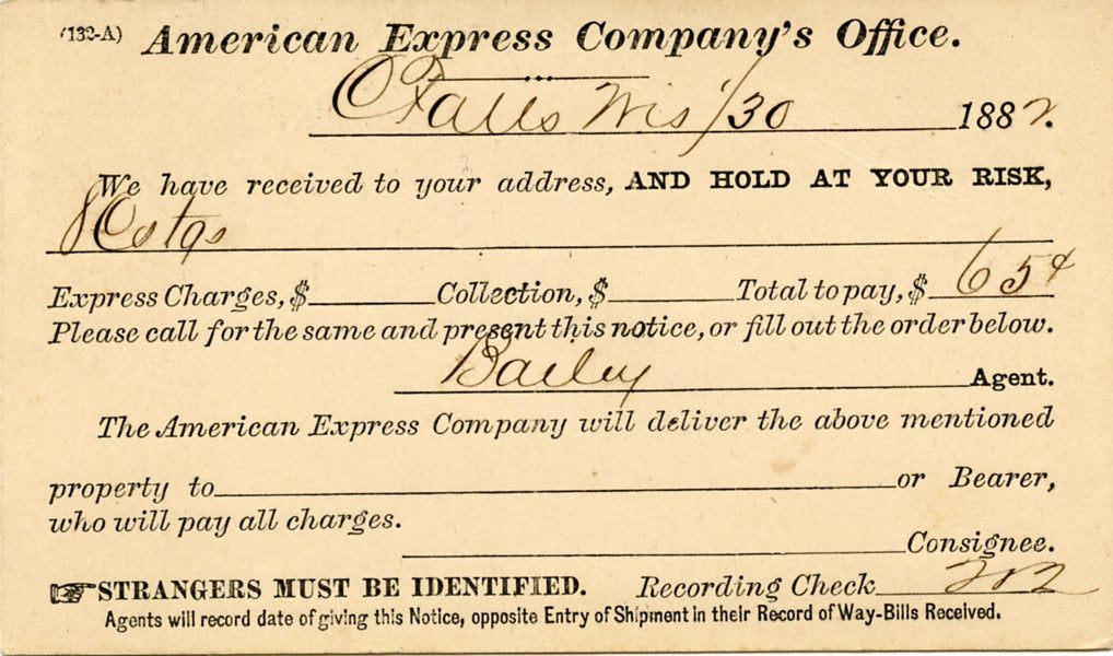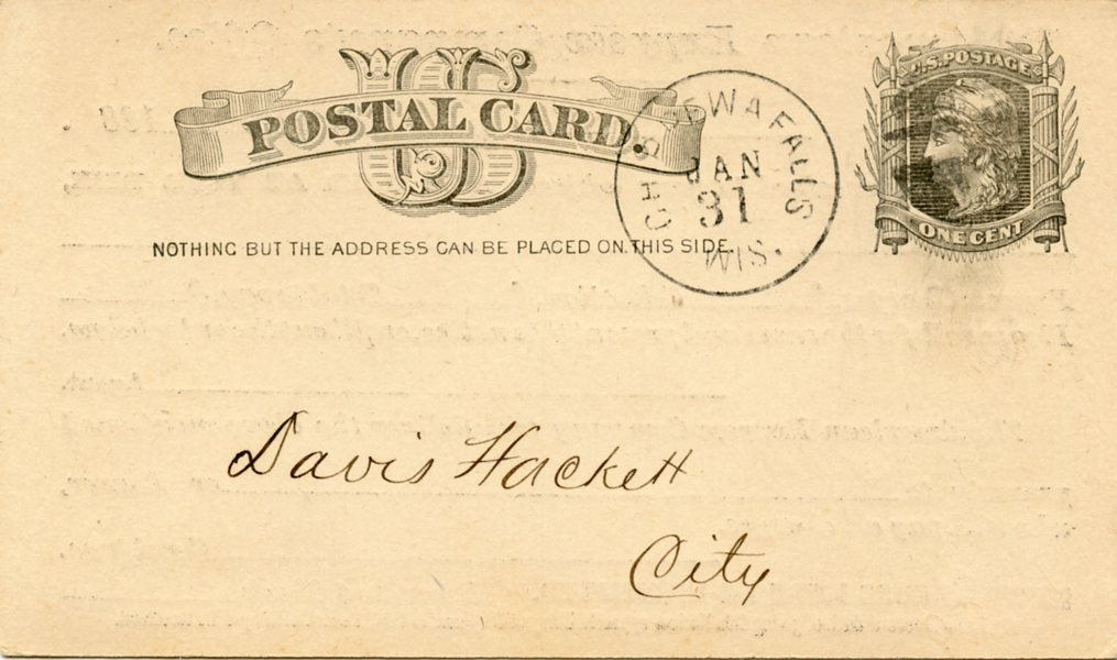 U. S. Postal Card, One Cent, 1882, American Express, Chippewa Falls, WI [Postcard]