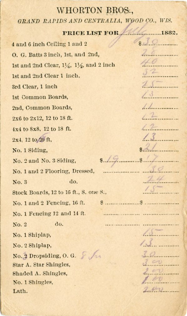 U. S. Postal Card, One Cent, 1882, Whorton Bros., Grand Rapids and Centralia, Wood Co., WI [Postcard]