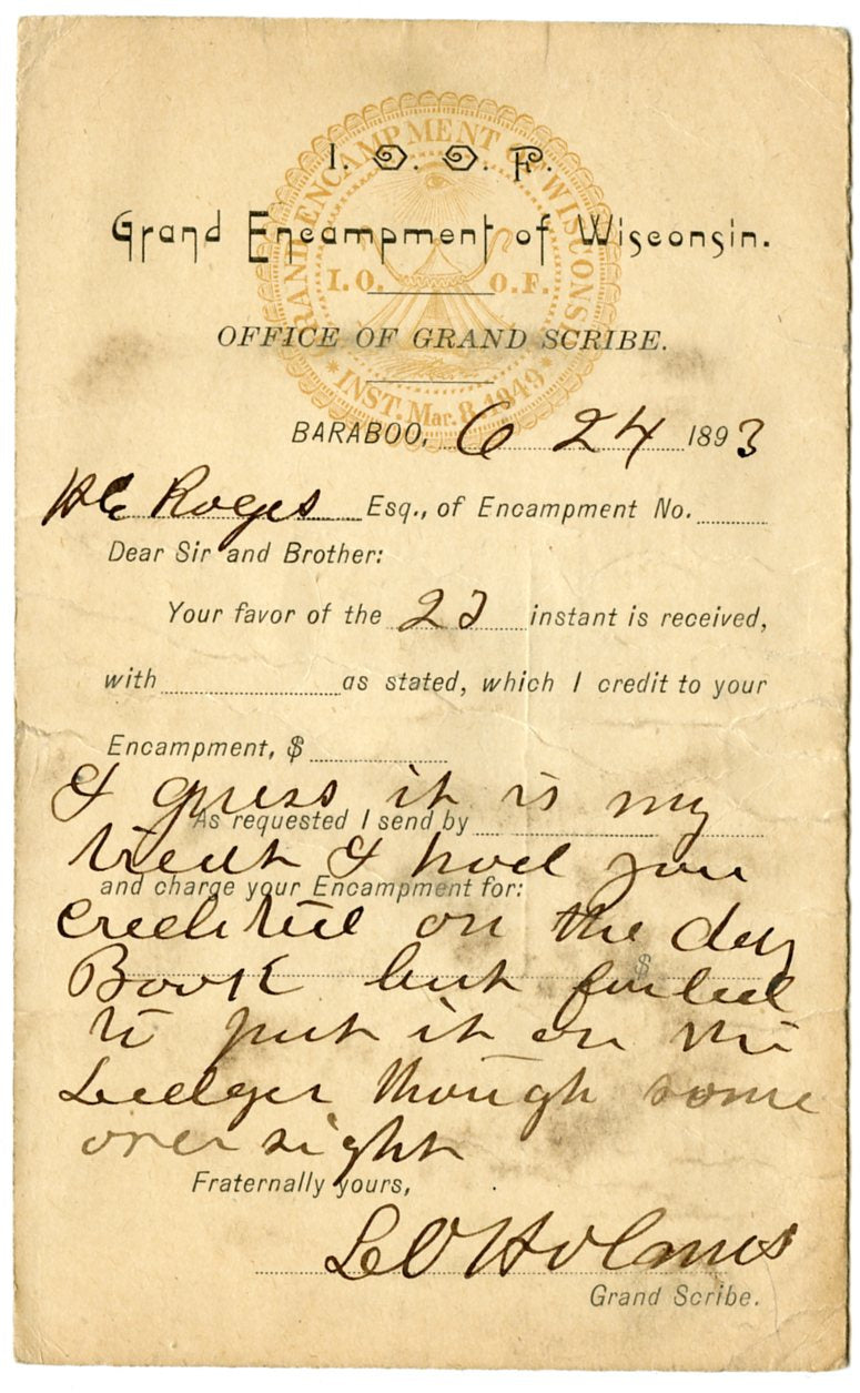U. S. Postal Card, One Cent, 1893, I. O. O. P. Encampment, Baraboo, WI [Postcard]