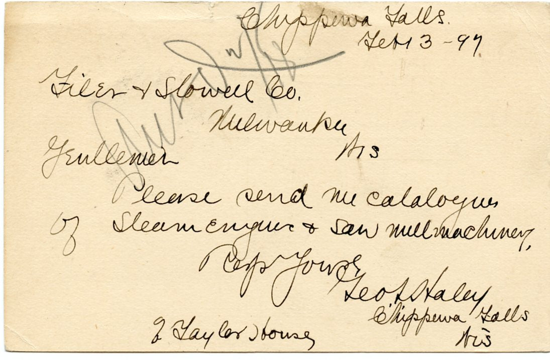POSTMARK: Feb 3, 1897, Chippewa Falls, Wis,