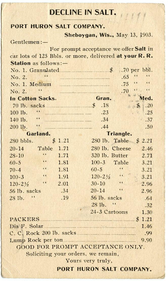 U. S. Postal Card, One Cent, 1903, Port Huron Salt Company, Sheboygan, WI [Postcard]