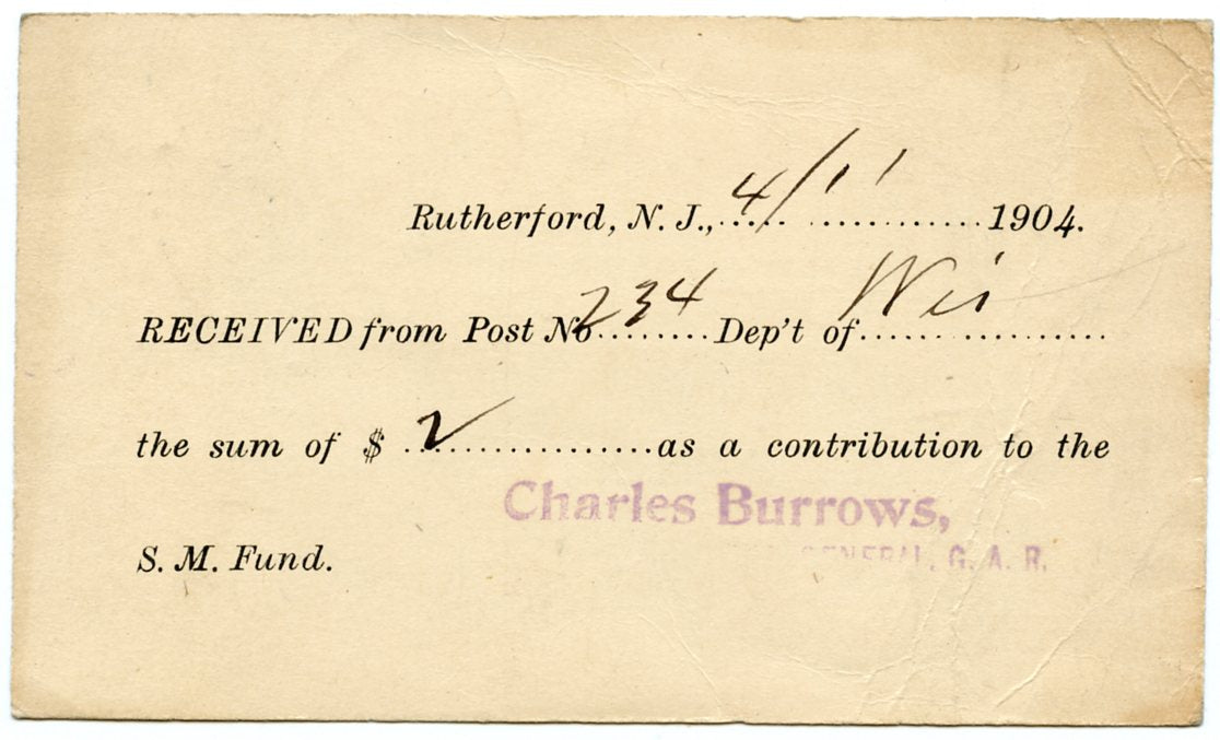 U. S. Postal Card, One Cent, 1904, Charles Burrows, G. A. R., Rutherford, NJ [Postcard]