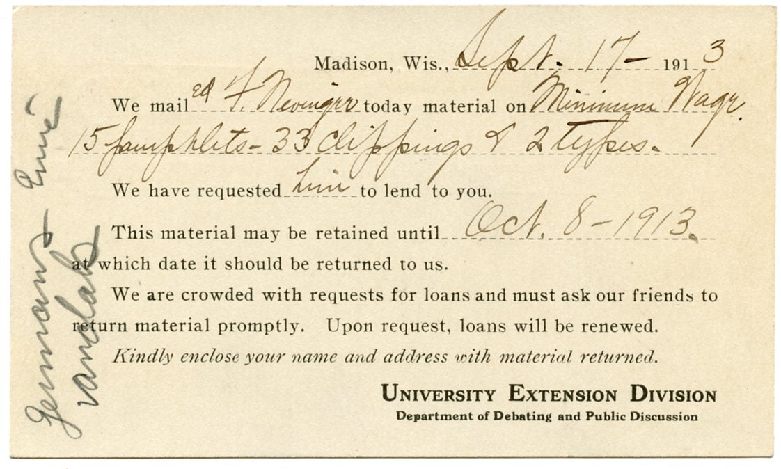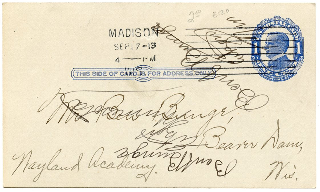 U. S. Postal Card, One Cent, 1913, University Extension Division, Madison, WI [Postcard]