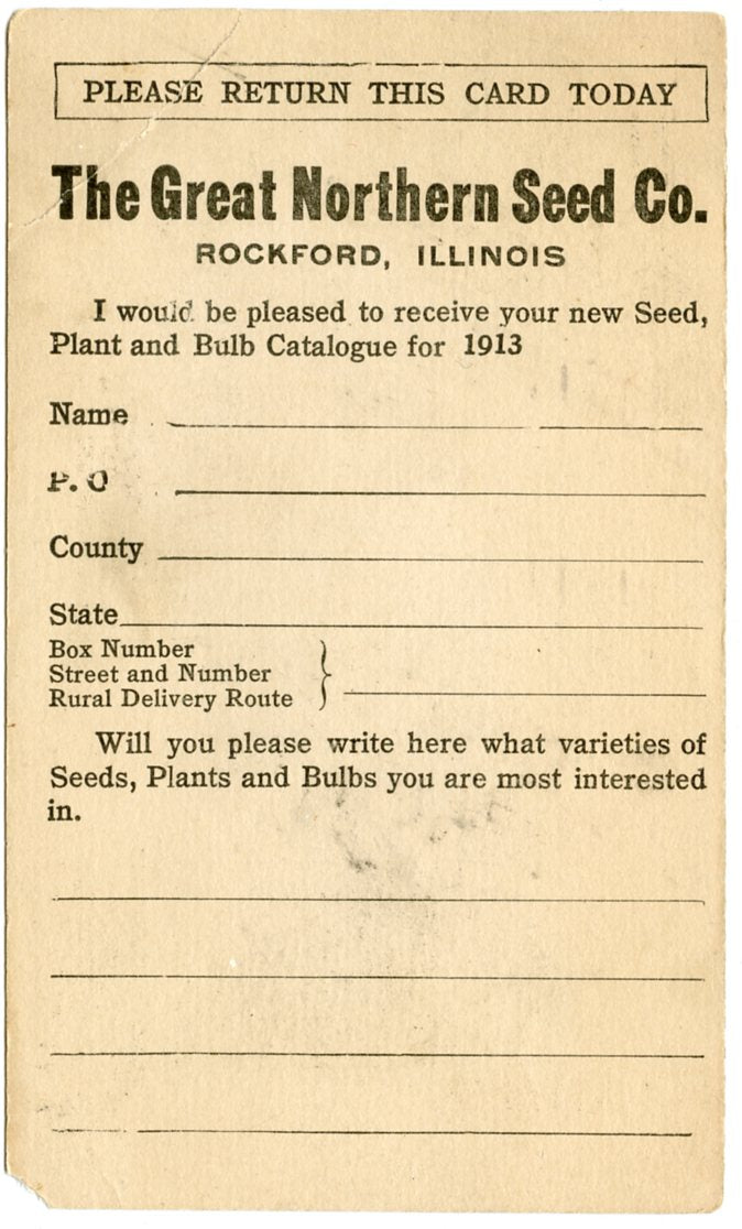 U. S. Postal Reply Card, One Cent, Great Northern Seed Co., Rockford, IL [Postcard]