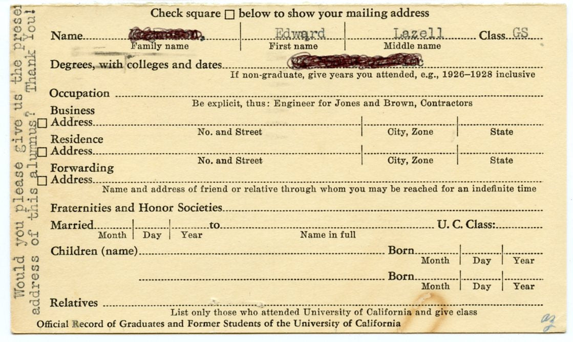 U. S. Postal Reply Card, One Cent, University of California, Berkeley, CA [Postcard]