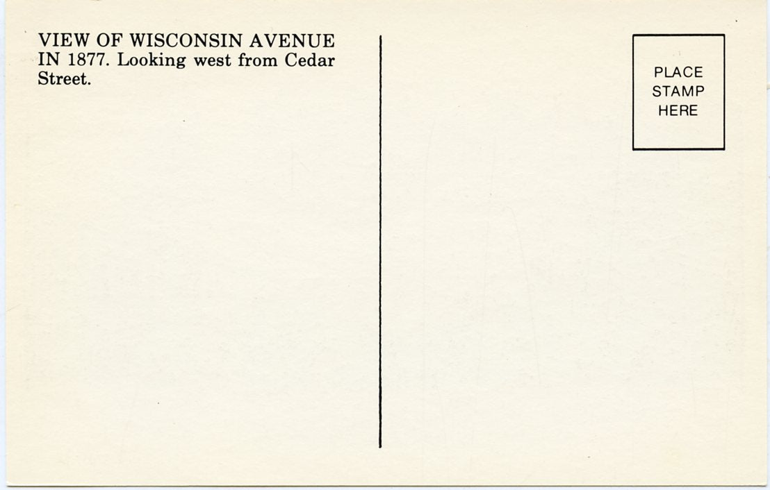 POSTCARD TITLE: View of Wisconsin Avenue in 1877, Looking West from Cedar Street