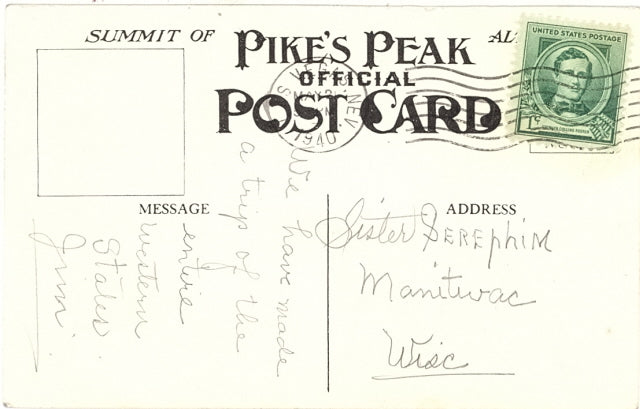 POSTCARD TITLE: Windy Point Tank, Pike's Peak Cog Road, Colo.