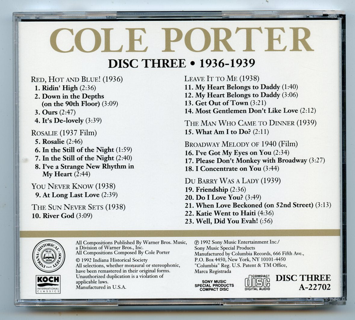 You're the Top: Cole Porter in the 1930s, Disk Three, 1936-1939