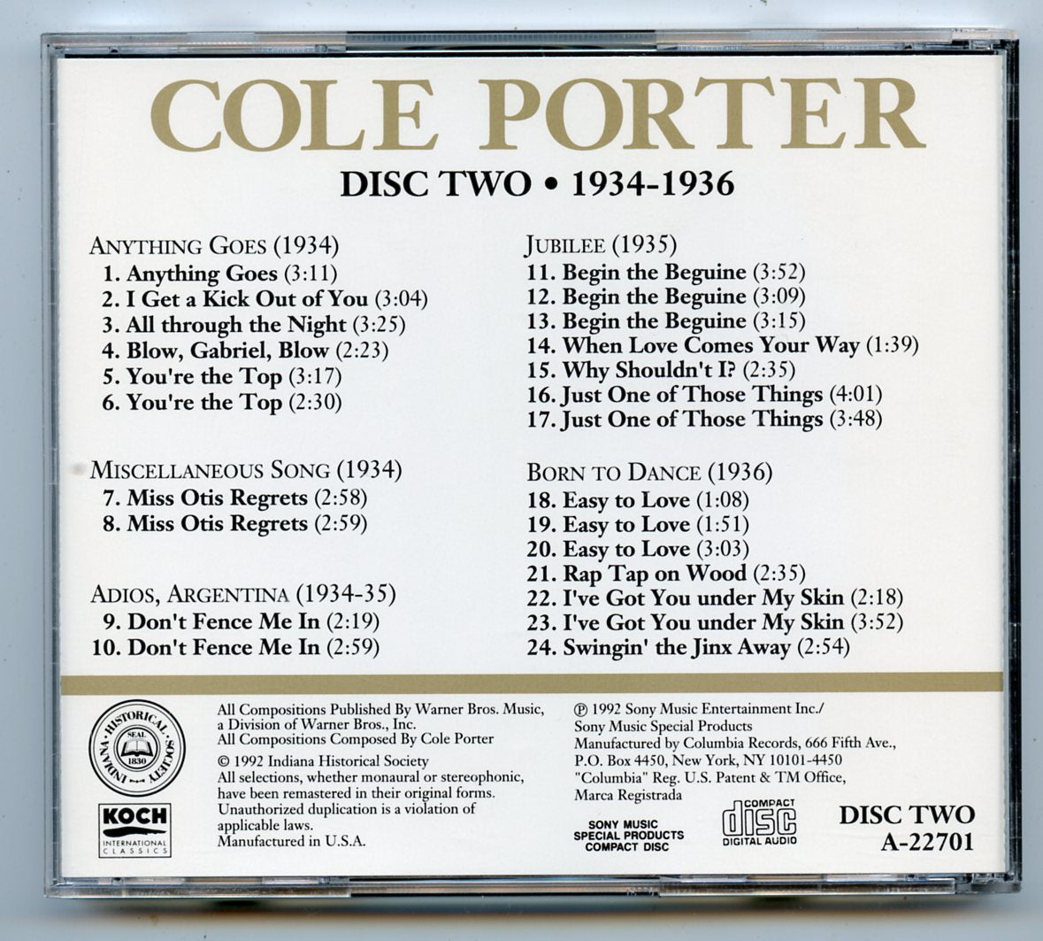You're the Top: Cole Porter in the 1930s, Disk Two, 1934-1936