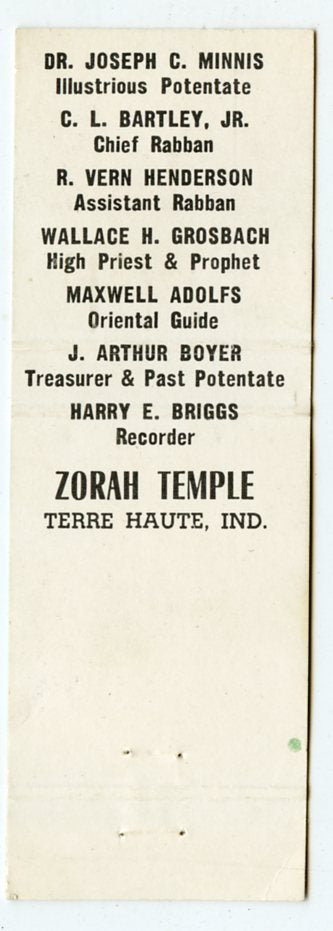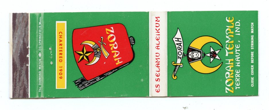 Zorah Temple, Terre Haute, IN Matchbook Cover
